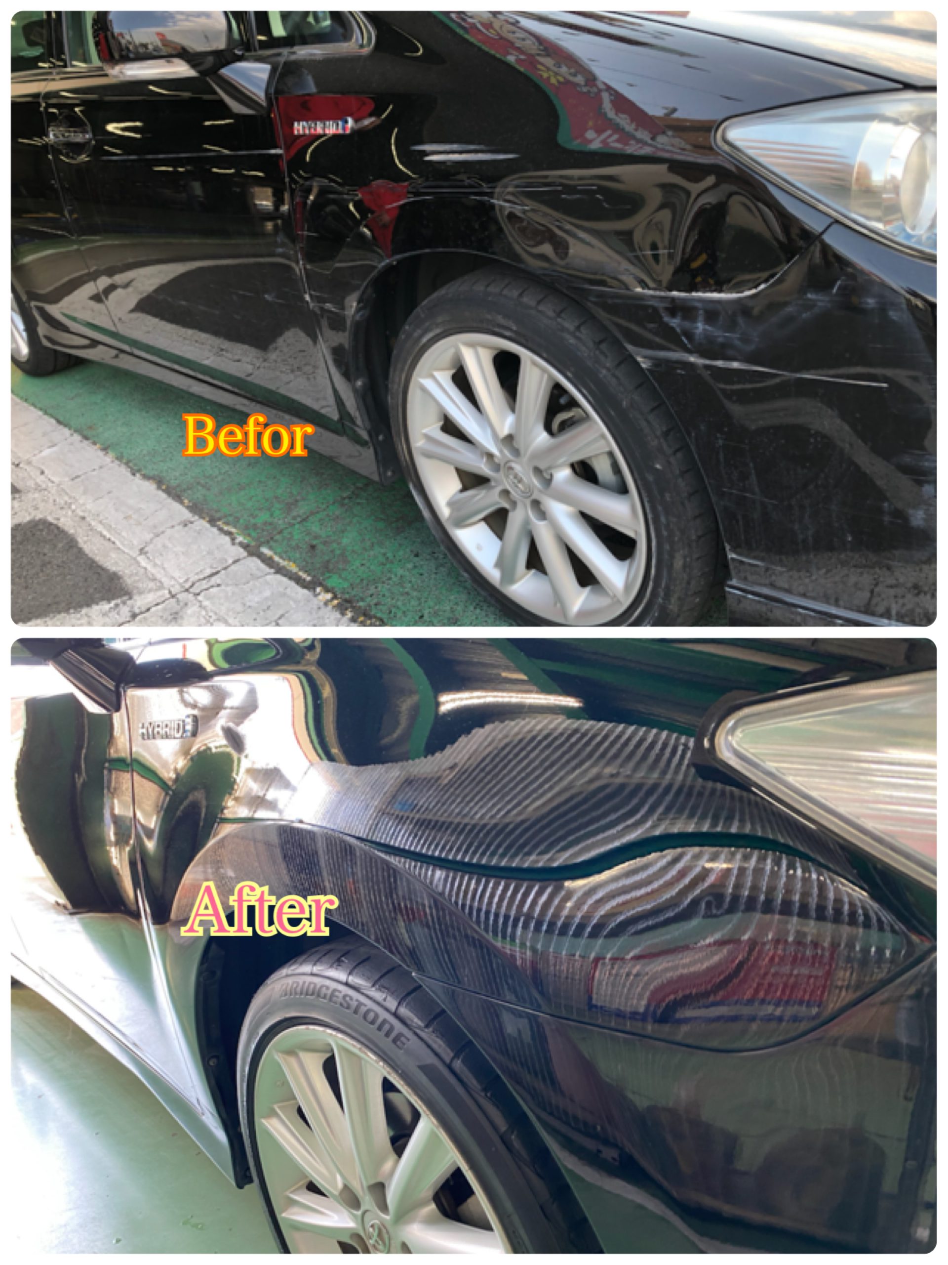こんにちは!店長の中原です。トヨタSAIの修理をご紹介致します。 今回はリサイクル部品を使用し全体の修理費を抑える事が出来ました。 当社では代車無料、修理永久保証(一部除く)でサービスを提供させて 頂きます。見積無料なのでお気軽にご来店下さい。