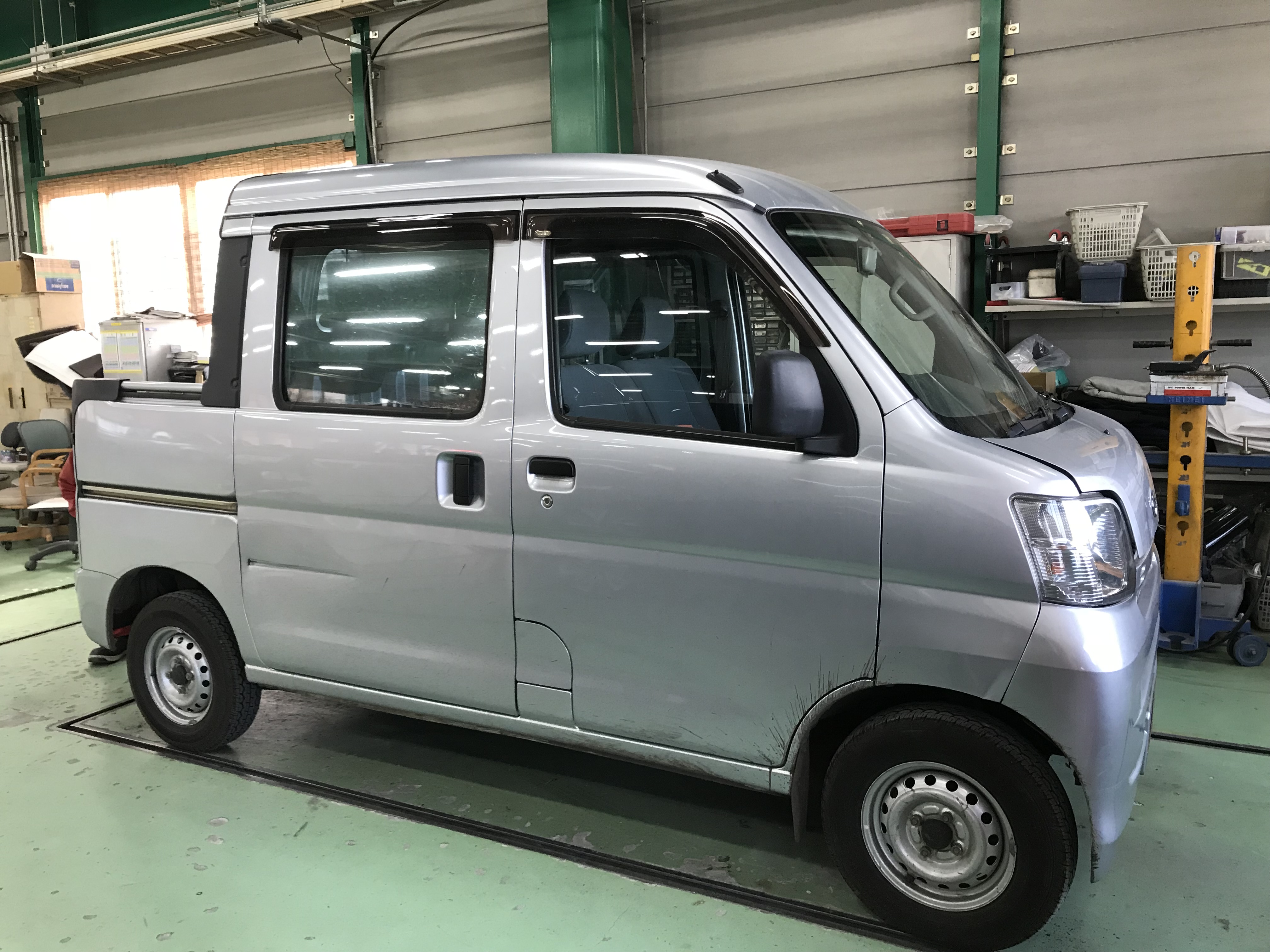 只今、販売部門からの依頼でハイゼットデッキバンを全塗装、色変え中でございます!